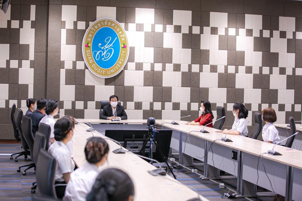 7月9日上午,川登喜大学素攀孔子学院“汉语桥”高级中国语言文化训练营正式闭营,川登喜大学校长西洛·彭潘廷博士出席,并亲切接见本校参加第21届“汉语桥”世界大学生中文比赛选手和指导老师、素攀孔院中泰方院长。川登喜大学国际事务与公共关系副校长潘查妮·高娜博士主持仪式。